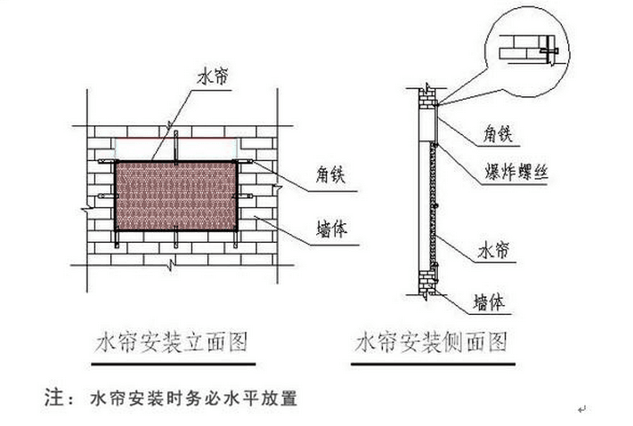 第二步,按下圖裝上風機或水簾,安裝前,先用角鋼焊好托架,風機和水簾要確保水平安裝,固定螺絲一定要堅固可靠,  裝上水簾后注意要用玻璃膠封邊以免影響對流效果。